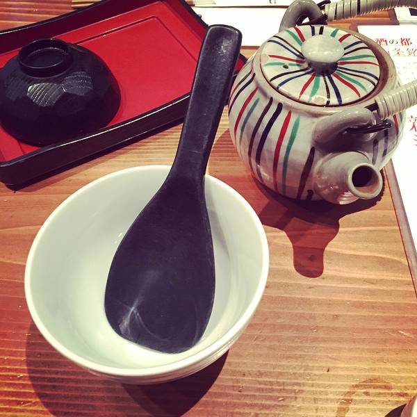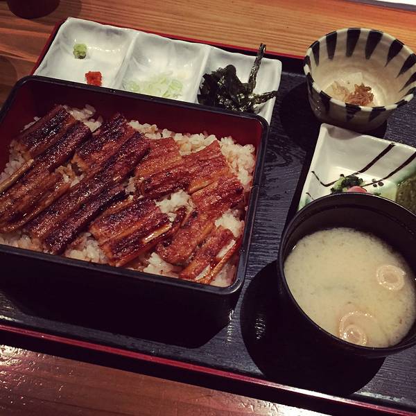 这是一家以鳗鱼饭为主打的餐厅,吃法可讲究了,鳗鱼饭的味道很赞,并且餐厅的位置很好,在市区的广场内,装修的很有格调。来这的话可以乘广岛电铁1、3、7在本通站下就可以。费用:午餐人均约 1000 日元, 晚餐人均约 4000 日元。餐厅在这里面的一个小弄堂里,这里是广岛市中心的一条室内步行街叫“本通”,顶上设计有点欧式,人流也比较多,步行街上以服装店、餐厅、咖啡厅为主。餐厅进去的小弄堂,门口种了些竹子,配上雨景很有感觉。餐厅里面有包厢也有大厅的区域,中午都像工作餐的形式,所以出售的都是套餐。餐厅的走廊。包厢都得盘腿吃饭。简约的设计配上木质风格的装修很有格调。点了一份鳗鱼饭1800日币,饭是经过烤过的,吃法也很讲究,可以先吃点,然后用茶泡着吃。这就是茶了,用小碗盛点泡。这是烧酒。