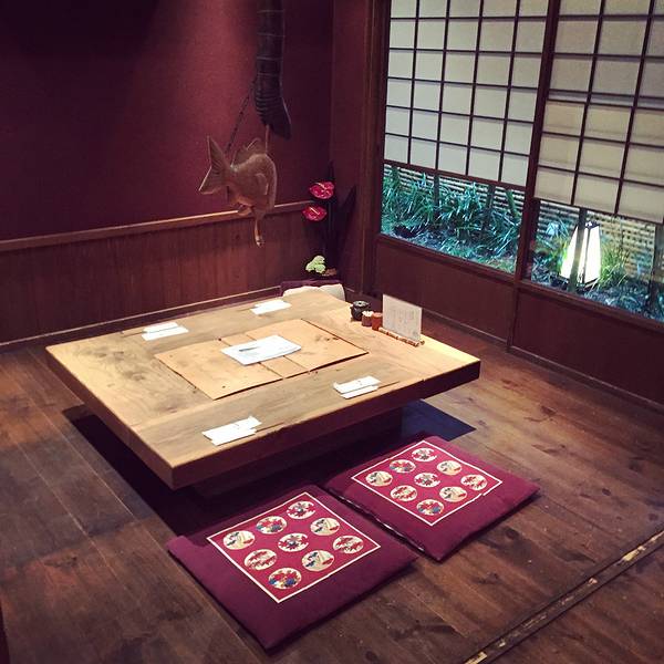 费用:午餐人均约 1000 日元, 晚餐人均约 4000 日元。包厢都得盘腿吃饭。这是烧酒