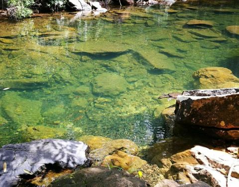 这是一处隐藏在深山雨林之中的瀑布,瀑布的水量不是很大,形成了一个一个清澈的水潭。瀑布细细的涓流,非常的清秀,具有着浓浓的仙意,水潭中有许多的小鱼,真的是非常的漂亮,这里也可以下去游泳,可以好好的体验一下。