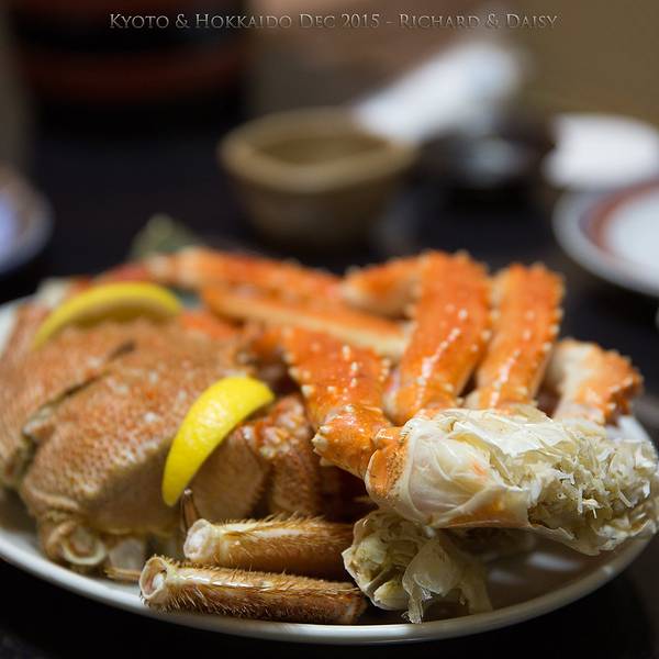 离开小樽返回札幌,这一天晚上我们在E路预定了螃蟹的套餐,在札幌的“我的”螃蟹总店,可以直接打车去,因为“我的”会报销1000的打车费用,记得下车时拿收据。 交通:地铁南北线薄野站,步行7分钟 到了北海道,吃螃蟹套餐是必选项目。札幌“我的”螃蟹总店是单独的一整幢楼,一楼check in 之后,去楼上的包厢里吃螃蟹套餐,众所周知,日本最知名的螃蟹就是三大蟹: “帝王蟹”“毛蟹”“松叶蟹” 而“我的”这个螃蟹套餐,是三大蟹都能吃,而且不仅是各种吃法都有,最关键的是,三大蟹全都是无限量供应的,呵呵,也就是吃完了,你可以继续再点。