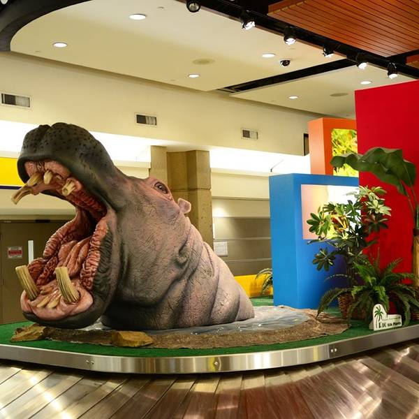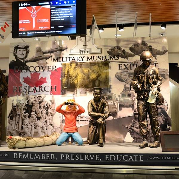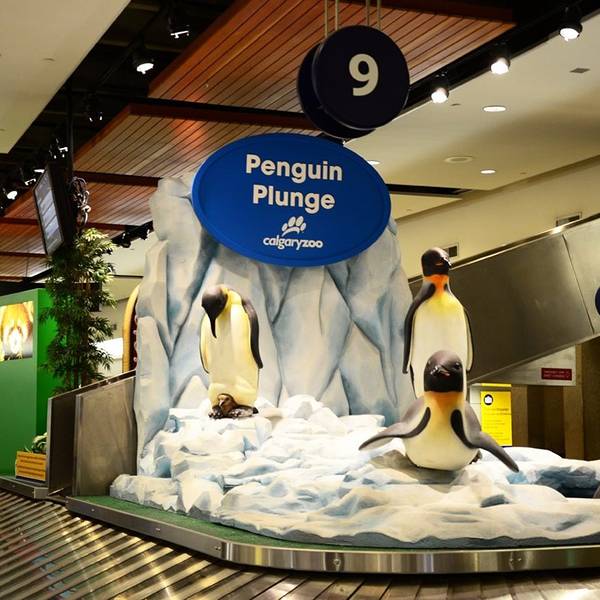 - 反正在卡尔加里机场等行李的时光绝对不会枯燥。走出机舱,这个憨憨的小黑熊就在欢迎你了