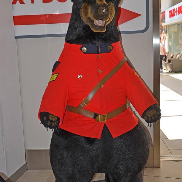 反正在卡尔加里机场等行李的时光绝对不会枯燥。走出机舱,这个憨憨的小黑熊就在欢迎你了