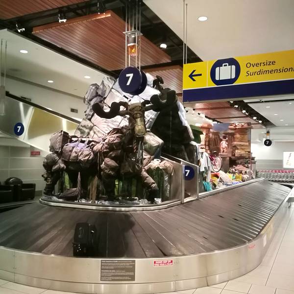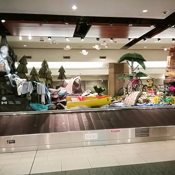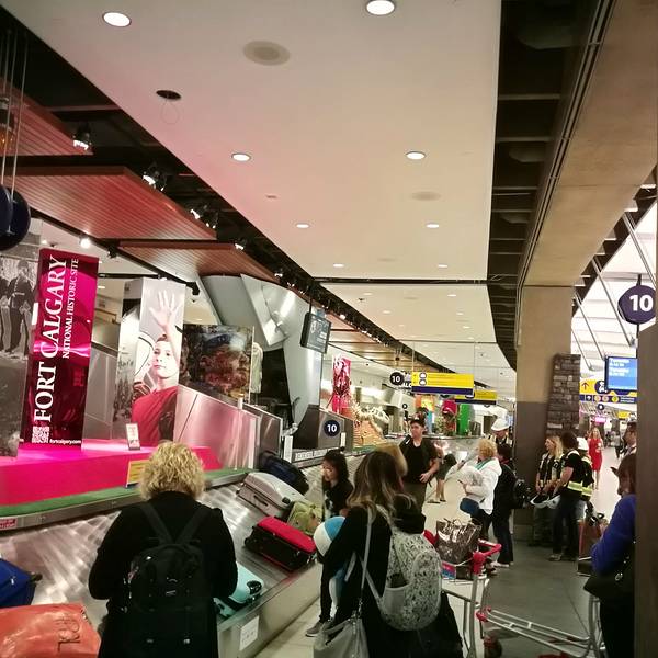 - 9:10抵达卡尔加里机场用行李摆成的行李转盘