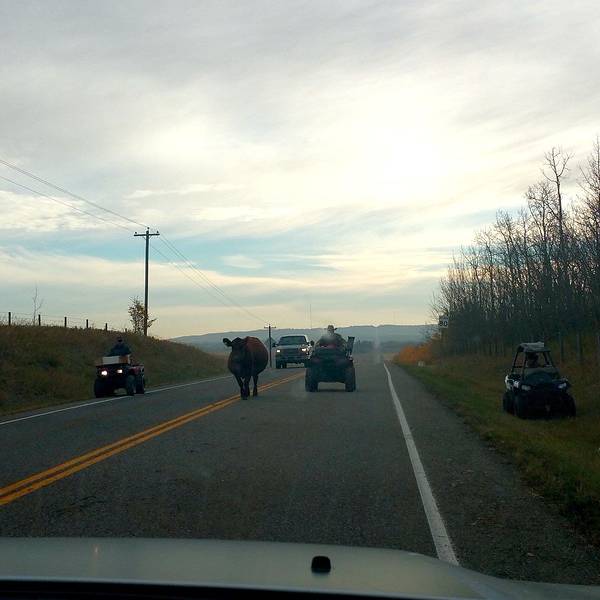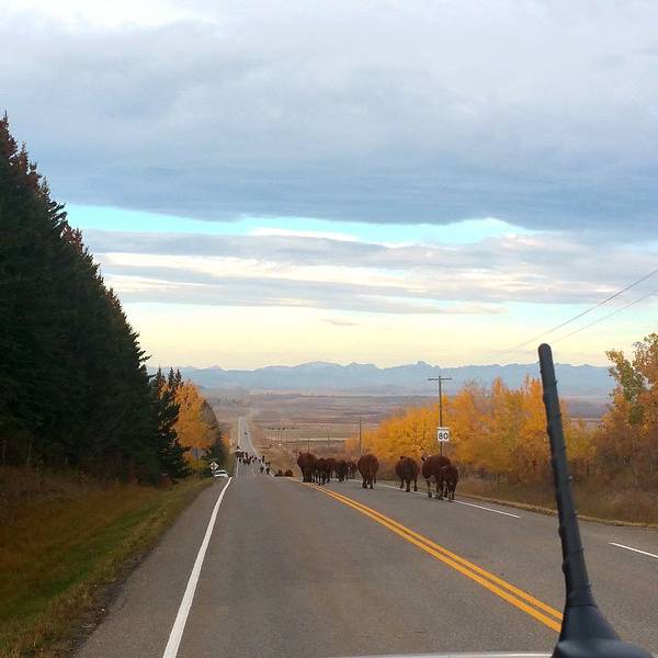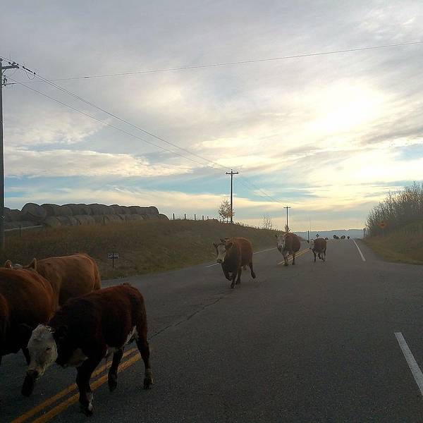 今天时间比较赶,一大早天还没亮就出发了,直接前往卡尔加里。快进入卡尔加里市区前看到了当地养牛的牧场主,他们的牛都是沿着马路转场回家,所有车都停下来等着它们过去。卢Sir想买水果6S,定位了个卡尔加里苹果...
