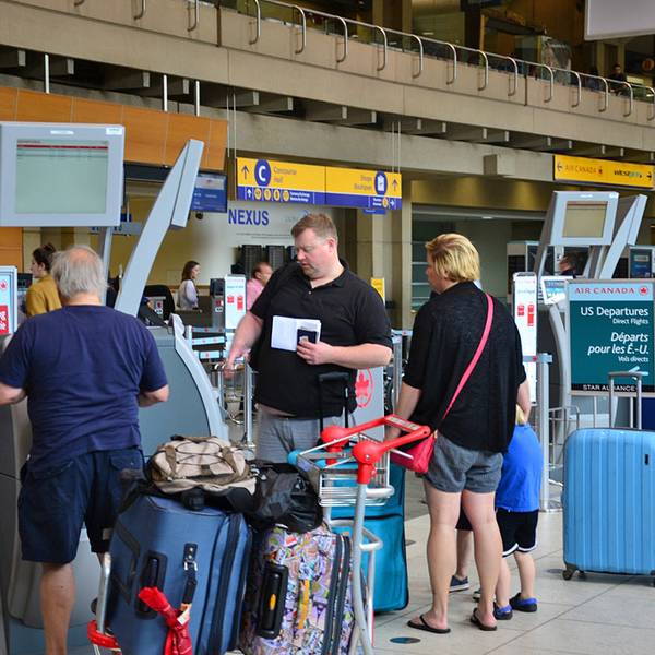 7月10号,由于我们飞往渥太华的飞机是上午11点多的,于是几乎睡到自然醒,吃过早饭,快九点半才开车出门。酒店距离机场只有不到3公里,路上找个加油站加满油,又花了29加元(多巧,跟第一次加油同样费用)。驶入机场按照路标找到Alamo的通道,由于是零免赔保险,工作人员只是简单地看了下外观,打火看看油表抄下里程(里程表41225km),就打印出一张纸条给我(在前面TIPS部分展示过了),一切OK。 至此本次自驾圆满结束,总结如下:租车费用共计2385元(人民币);加油费用114加元,折合人民币570元;停车费共48.5加元(包括给黑哥们那15加元),折合人民币243元。 综上所述用车总费用为3200元人民币,行驶总里程为41225-39695=1530km。折合每公里自驾费用约为人民币2.1元(而且这几乎是我们能租到的最小的车了)。 2013年暑假我们一家与王哥小翟(就是楼上的Betazhai哦)在美西自驾7座车,每公里综合费用也是折合到2.1元,不过两家分摊之后每家只有1.05元/公里(这里面有美国物价比较便宜的因素)。而2014年夏天我们和上海芊芊一家自驾南非,也是合租7座车,分摊之后每家每公里为1.32元。于是,我不得不承认,自驾出游,还是两家合租7座车比较划算。 好了,还完车算完账,走进卡尔加里机场航站楼。这是办票大厅,比较困惑的是挂着两面美国旗却只有一面加拿大旗。