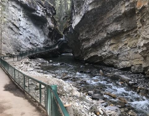 Johnston峡谷是淘金者探索落基山时发现的,但是Johnston先生最终并没有发现黄金,只给这个峡谷留下了他的名字。这条路其实也挺险峻的,只是后人在悬崖上铺了栈道,才没什么感觉。