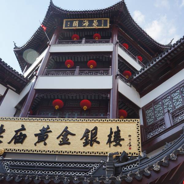 豫园商城这里的众多金店银楼中比较知名的一家了,老庙黄金琅琅上口,豫园这家应该是总店了,门面也是古色古香的。