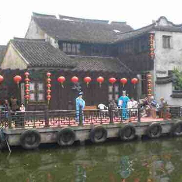 水上舞台每个周末都会上演越剧景点,比如天上掉下个林妹妹等等耳熟能详的经典都会每周上演。但是2010年之后,搬到了七老爷庙旁边的新水上舞台,演员班子不变,舞台更加宽敞了。但是却没有曾经在最繁华的西街就能听到悠扬的乐曲来的惬意了…