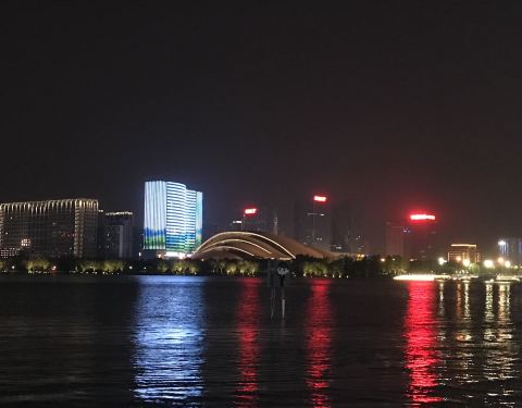 晚上到天鹅湖体育公园看灯光秀,人山人海,坐在湖边,湖的四周高楼林立,每座楼灯光闪烁,灯光效果真的不错,有一点小惊喜,开心。