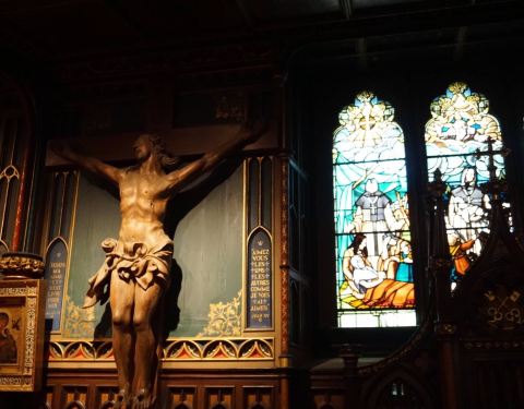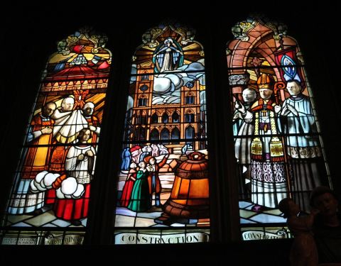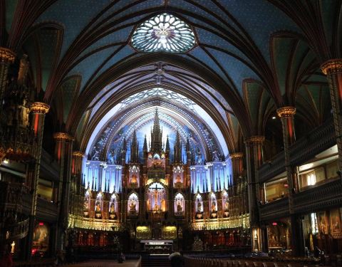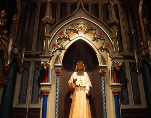 皇家广场边的凯旋圣母教堂,十分小巧可爱,是北美最古老的石材教堂,教堂内部的陈设莊严简僕。