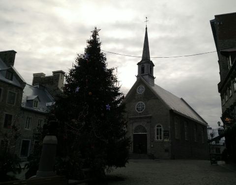 周边的房子也很古老,门口小广场已经开始布置圣诞节的圣诞树装饰品了教堂位于魁北克市的下城区,教堂的建筑小巧玲珑,看上去不大。周边的房子也很古老,门口小广场已经开始布置圣诞节的圣诞树装饰品了。