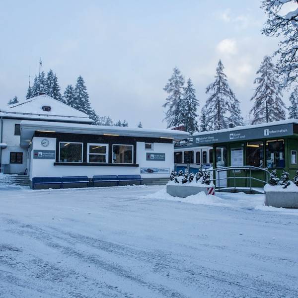 第二天一大早坐火车到Garmisch-Partenkirchen,走人较少的,上方标有ZUGSPITZBAHN的黄色标记牌那一侧的地道出站,从火车站出来过马路,就能看到楚格峰的齿轮火车车站。
