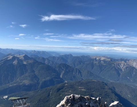从Berchtesgaden到Garmisch-Partenkirchen需驱车3个小时才能抵达, 而登山火车Bayerische Zugspitzbahn的车站就在加米施-帕滕基辛车站的背后。上山的票有两个目的地,一个是Zugpitze 楚格峰, 另一个是Garmisch Classic, 这里冬季是滑雪场,夏季适合徒步远足,还有一个叫做阿尔卑斯天空漫步道的观景台。买票的时候我跟售票员说要买Zugpitze+Garmisch Classic 套票,但是我买票的时候已经中午,售票员问我明天是不是还在加米施,我说不是今晚就离开了,然后他便提醒我只有半天的时间玩两个点太赶了,建议我就只去楚格峰就好。感谢他的提醒,我才得以在楚格峰玩得如此悠闲畅快,否则我大概要耗好多时间在缆车上来来去去了~ 但是没去成Garmisch Classic 有点遗憾 😔