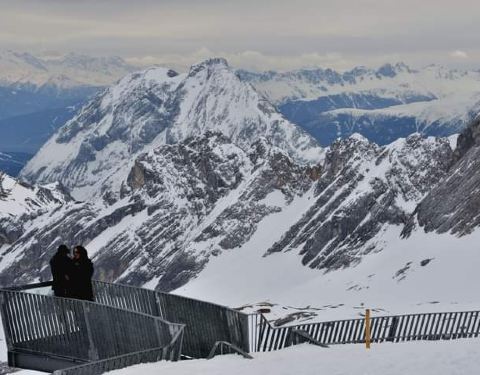 车票在门口的售票亭当场买,楚格峰登山火车和缆车票每人47欧元,凭德国铁路通票便宜五欧元,晚上查了天气预报,ZUGSPITZE 明天不下雪了,决定第二天上楚格峰。楚格峰(Zugspitze)位于德国和奥地利边境处,属于阿尔卑斯山脉,是德国的最高峰。现在有两条路线通向楚格峰顶端,无论选择较缓的坡路还是险峭的...晚上查了天气预报,ZUGSPITZE 明天不下雪了,决定第二天上楚格峰。楚格峰(Zugspitze)位于德国和奥地利边境处,属于阿尔卑斯山脉,是德国的最高峰。现在有两条路线通向楚格峰顶端,无论选择较缓的坡路还是险峭的陡路,徒步登顶都需要十个小时左右的时间。在德国境内有齿轨火车和索道缆车通往峰顶,如果从奥地利一侧乘蒂罗尔-楚格峰缆车(Tiroler Zugspitzbahn)只需十几分钟时间就到达顶端。