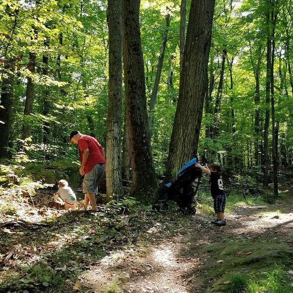 后来遇到了一个带着两个孩子徒步的爸爸,反复和他确认了这个森林是没有危险野兽的。。不过看到这个爸爸带着两个宝宝,那么说明是充分安全的。其中一个宝宝还在穿着纸尿裤,摇摇晃晃才能站起来,而另一个宝宝还没有手推车高~国外家长对于让孩子接触大自然,真的是心很大~后来走了很久,眼看我们在没有路线的地图里越走越远,而且也不知道是通向哪里,估计待会还要原路返回,就直接返回出去了。