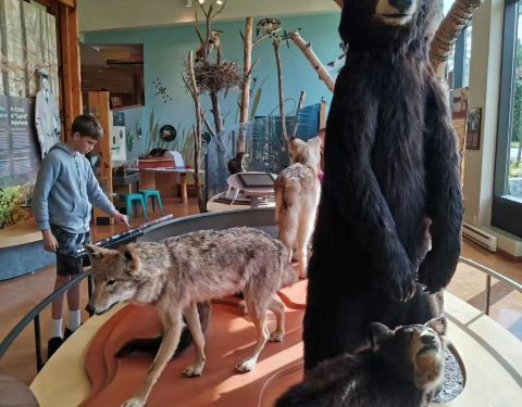 渥太华北郊的公园,免费参观。 公园很大,是休闲途步的好去处,在游客中心咨询一下,到风景最好的几处观赏一下。 游客中心的动物标本,不多,但是很精致,有趣的。 到早了,叶子红了一部分,秋色不够浓,好在天气坏,在林子里到处走走也蛮惬意的~