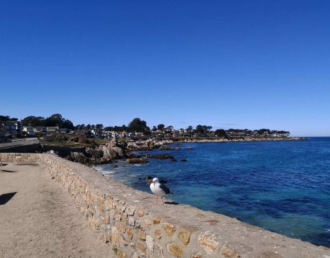 顺着蒙特雷海岸线惬意行走,来到了一个极其优美的小海湾,白白的沙滩,清澈的海水,这里就是情人湾顺着蒙特雷海岸线惬意行走,来到了一个极其优美的小海湾,白白的沙滩,清澈的海水,这里就是情人湾。有一对新人在这里举行婚礼,多有寓意啊!