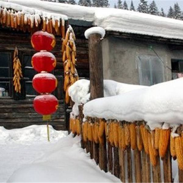 e家农家院是雪谷最靠近森林的住处,远离主街,白天没有喧闹的游人,夜里没有大红的灯火,有的是纯粹的雪,是延绵的森林,是静谧的空气。e家院子的后面便是林场,不似穿越途中被精心压好的雪路,林场里是松软的抹过膝盖的深雪,真正的北方的雪。e家的院子里堆着各式各样的雪人,形态各异,总有一个会让你忍俊不禁,如果你想堆一个,热心的老板会非常乐意指导。