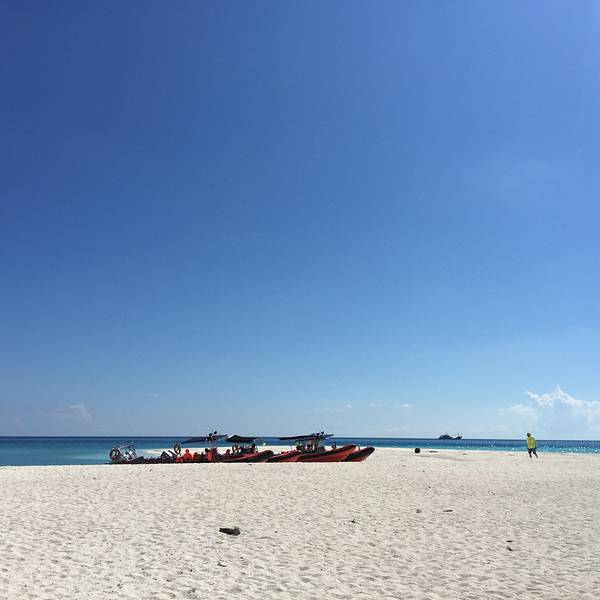 早上醒来,看到这样的景色,真是美醉了!蓝色的海面,中心泛白的是全富岛,超级美!那真是超越了所有全富岛是一处无人居住的岛,海拔约1米,面积不大10分钟走完一圈。岛上沙滩很细,周围海水清澈、透明,美的像玻璃一样。