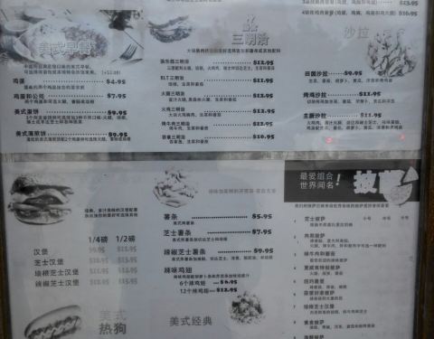 - 餐厅比较大,有各式三明治,汉堡,pizza,这还提供早餐,可贵的是有中文菜单,价格不贵