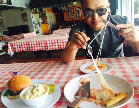 晚上去的时间有些晚了,导致只能吃到pizza,买得中号,俩人都吃不完,夏威夷披萨不愧是购买率最高的,老板很nice,很美式风格得快餐厅