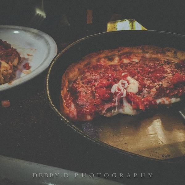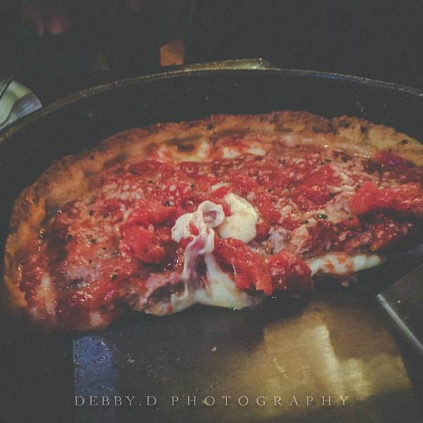 早就听说了芝加哥的深层芝士披萨,于是决定坐轻轨前往生意很好的Lou Malnati's Pizzeria。