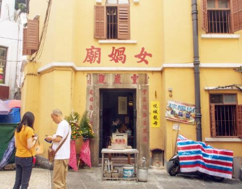 女娲庙座落在草堆街与大三巴街交界处,行人游客乐意不绝,人来人往,但里面却比较安静,人气不旺,建...