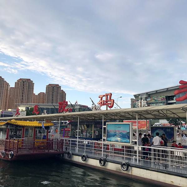 吃完饭我想今天提早一些正好也差不多落日了,大概6点多直接打车去的天津之眼,一看哎呀,没人排队,窃喜~走进一问早就不卖票了😂没票了……保安说你的上午来,能排上……宝宝又失望了……然后转战游轮,这回走到码头了,坐的7点前最后一班,7点以后100,之前80,其实晚上都是人家看你的船,你自己看不到的,所以我选择了七点前的班次,讲解员很认真,过了各种桥,两边的房屋,风景都不错,可以从照片上看到😀