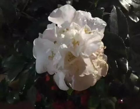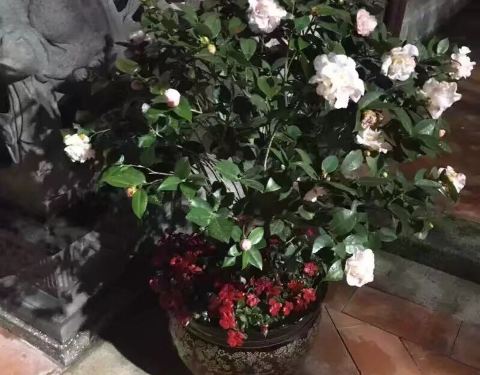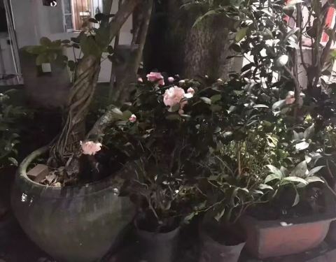 晚上出来觅食的时候遇见的,感觉好神秘。门口有两颗山茶花。