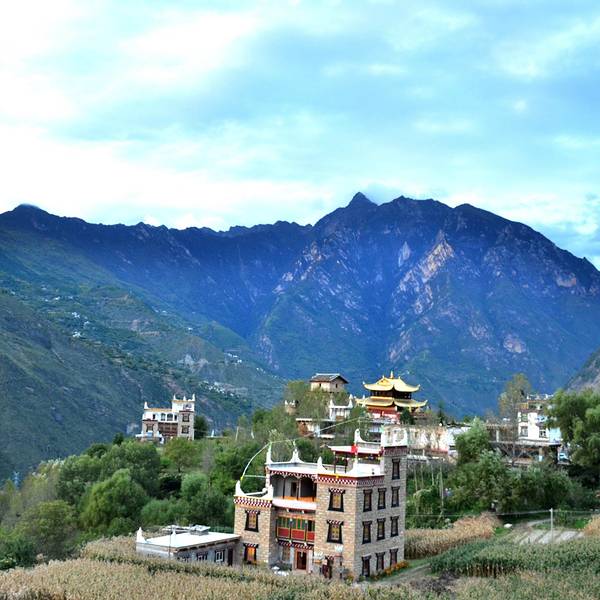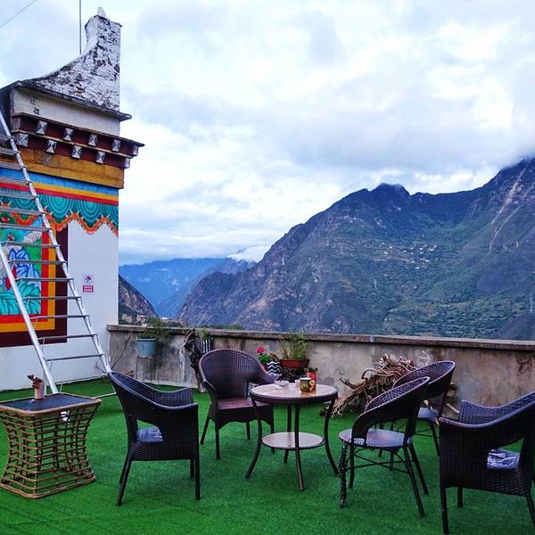 我们住的圣地映像位于中路藏寨山腰,房前屋后种满了鲜花,后院还有小花园。这应该是中路藏寨最好的酒店了我们住的圣地映像位于中路藏寨山腰,房前屋后种满了鲜花,后院还有小花园。三楼四楼还搭有观景平台,在平台上就可欣赏到整个藏寨在云雾缭绕中若隐若现,环境很好。这应该是中路藏寨最好的酒店了。酒店楼顶四角都...我们住的圣地映像位于中路藏寨山腰,房前屋后种满了鲜花,后院还有小花园。三楼四楼还搭有观景平台,在平台上就可欣赏到整个藏寨在云雾缭绕中若隐若现,环境很好。这应该是中路藏寨最好的酒店了。酒店楼顶四角都供有一块白石,是他们的神灵,播种、收获、年节祭祖,嘉绒藏族都要对这些白石进行祭祀。屋顶靠山的一方有一个白石砌的鼎状物,上面放有陶罐,每逢家中有重要事情,就用陶罐来祈福。圣地映像的每一层楼都有茶室,阳台上还有各种各样的多肉,即便是在酒店楼顶,也摆放着露天茶室。除了触目可及的墨尔多神山,高天流云之下,红墙金顶的寺庙、沧桑凝重的碉楼与高大庄重的民居散落在青草绿树之中。看到不远处金光闪闪,没想到酒店附近几百米,便有寺庙隐藏在一片葱绿的树林后面。吃过晚饭,火把烧了起来,锅庄在震耳欲聋的音乐声中跳了起来。" 到了山顶要唱歌,山上所有的生命都很高兴听你的歌声;到了河边也要唱歌,水里所有的生命都很高兴挺你的歌。" 这是藏族老人告诉后代的一句话。当然,不用老人说,在朋友相聚时更要唱歌,让所有人因你的歌声而高兴,释放多余的烦恼。 展开
