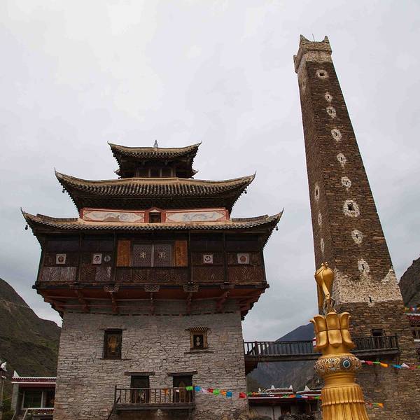 古碉楼是嘉绒藏族建筑的杰作,距今已有千年历史。古碉的建筑年代为唐代至清代,规模宏大,类型多样,建筑技艺高超,具有极高的美学、社会学、历史学、民族文化学价值。碉楼主要集中在河谷两岸,尤以梭坡和中路两乡境内的碉楼群最为稠密壮观,古碉保存完整,并与村寨民居相容一地。碉楼外形美观,碉基牢实,一般为四角、六角,甚至十三角的高方柱状体,用泥土和石块建造而成。千百年来,古碉经受了战争和风雨的剥蚀,地震的考验,仍然巍然屹立,有的已偏倚却不倒,有的弯曲为弓,自称成风景。