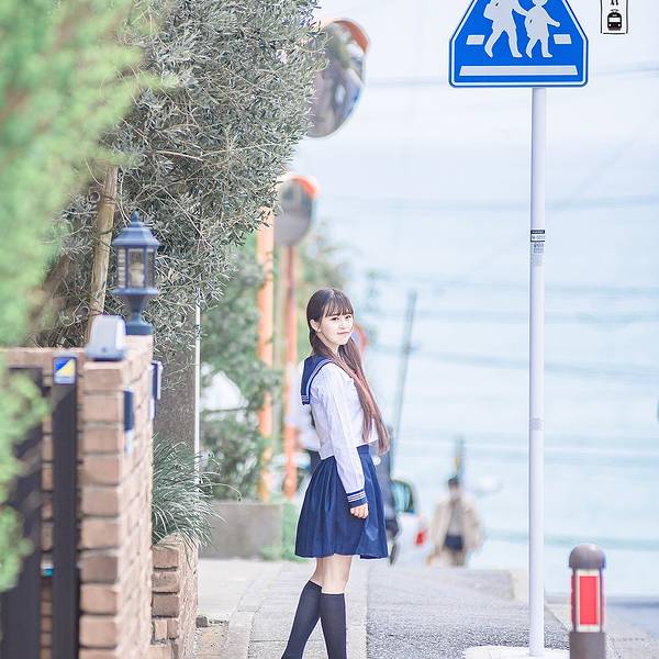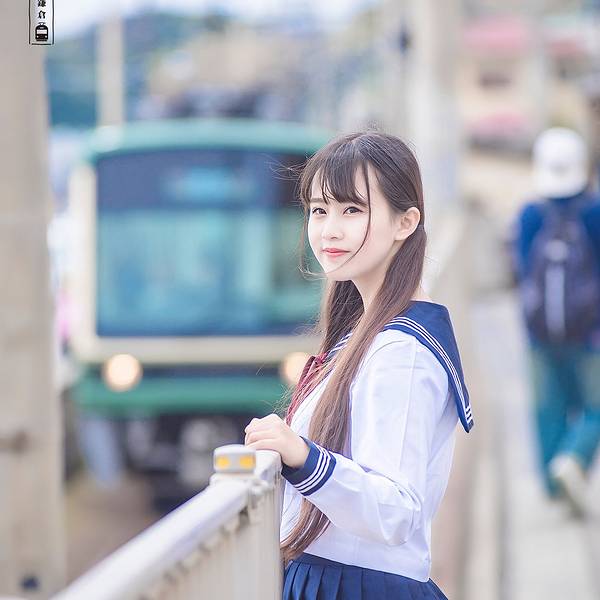 车快来的时候,黄色的杆会落下,在落下到车来还有一段时间,大部分人会冲到杆中间,毕竟c位并不好卡,要是不想把周围人照进去记得站在左边的角落。像我一样。这个位置就只能照到你和电车,几乎不太能有他人入镜,毕竟是个死角。哈哈哈打卡完绿色电车照就可以去镰仓高校看看啦,虽然不是樱木他们的学校,但是也总归和动漫有关系。