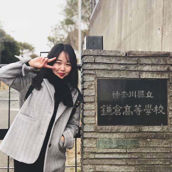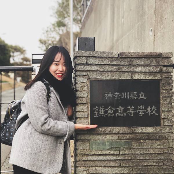 顺着上坡路一直往上,大概几分钟就到了学校门口。由于这个打卡地火了之后,学校不能够进去参观。在门口拍拍照就好啦。好像回到少年,回到学校,回到过去。年龄长了,时光过了,也要这么一直开心下去。镰仓挨着大海,冬天的海水加上阴天并不完美,甚至有些凄凉,可我们还是要到海边走一走。远方那一片金黄,映照着灰色的海面。你好啊,记忆中的少年。