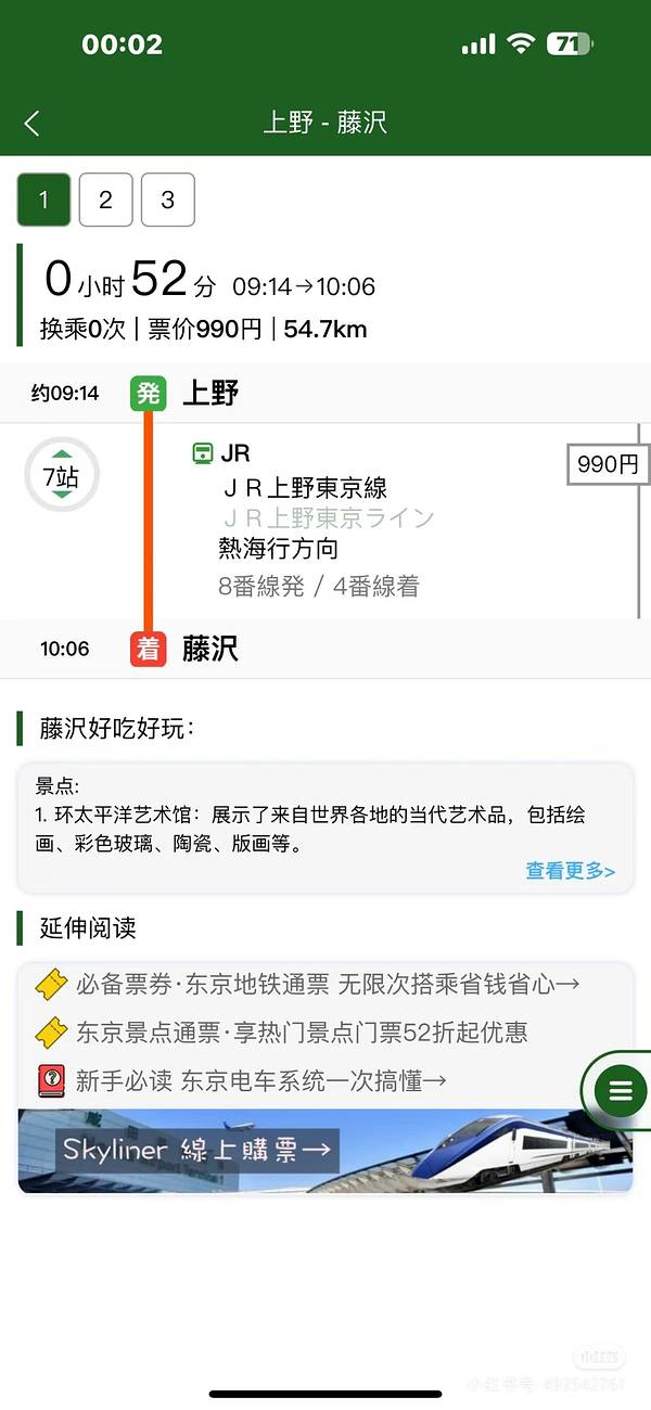 过了六站四十分钟左右就抵达了藤泽,跟着指示牌出了藤泽站,走过地下通道再转上天桥,看着一路的指引...上野到大船 坐 湘南单轨电车(只收现金) 到镰仓江之岛上野到 藤泽到 镰仓早上九点🕘多从上野站刷了suica(西瓜卡)进站,找到7️⃣号站台坐上🧡JU上野东京线前往热海🧡的🚄就出发去藤泽啦,车子很快,过...上野到大船 坐 湘南单轨电车(只收现金) 到镰仓江之岛上野到 藤泽到 镰仓早上九点🕘多从上野站刷了suica(西瓜卡)进站,找到7️⃣号站台坐上🧡JU上野东京线前往热海🧡的🚄就出发去藤泽啦,车子很快,过了六站四十分钟左右就抵达了藤泽,跟着指示牌出了藤泽站,走过地下通道再转上天桥,看着一路的指引,走到了天桥对面的江之电藤泽站台,先在门口的售票窗买了800一张的江之电一日通车票,就可以顺利上到江之电前往心仪的湘南海岸打卡点打卡咯 展开