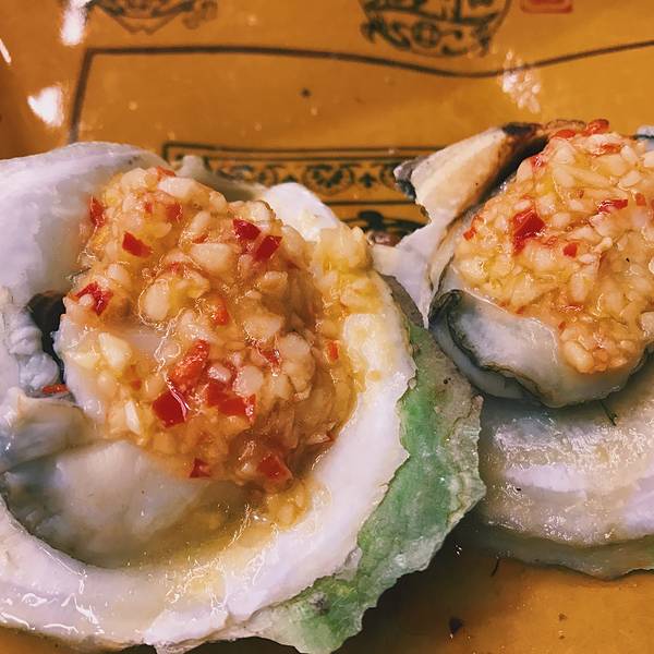 接着往里走,小吃街里面还是挺大的,小排挡稍多一些。我们在门口点了两个烤生蚝还有烤鱿鱼,先填填肚子
