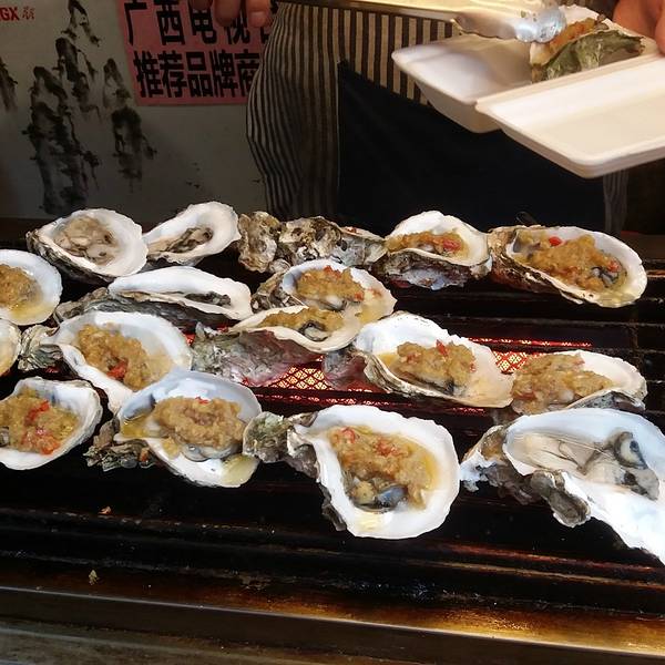 走过两江四湖风景区,没多久就到了尚水美食街,站在门口,各种香味扑鼻而来,眼前是各式各样的小吃。我们在门口点了两个烤生蚝还有烤鱿鱼,先填填肚子。接着往里走,小吃街里面还是挺大的,小排挡稍多一些。我们...