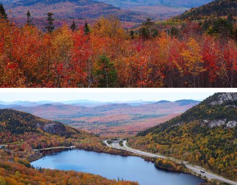 白山国家森林位于新罕布什尔州,距离波士顿约两小时车程。风景秀丽,美丽至极,很有点新英格兰地区的高贵风范。周围的房子都建在山上,一片农场主的感觉。白山的叶子大约在每年十月上旬开始红,到了中旬基本掉的差不多了,所以去看红叶的时间一定要掐准。