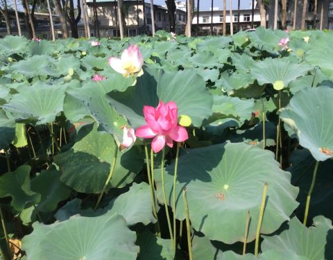 观音湖无疑是校园里最耀眼的存在。晴时,蓝天白云、有着岁月痕迹的教学楼倒映在湖间,宛如一幅绝美的画卷。湖中的荷花亭亭玉立,随风摇曳,散发出阵阵清香。每年夏季,荷花盛开的季节,这里便成了摄影爱好者的天堂,他们用镜头捕捉下这如诗如画的美景。湖中有座小岛,是白鹭家族的栖息地,时不时能看到水鸟们飞出飞进,它们与人类和谐相处,为校园增添了一份灵动与生机。沿着湖边漫步,微风拂面,让人心情格外舒畅,仿佛所有的烦恼都被这清澈的湖水洗净。