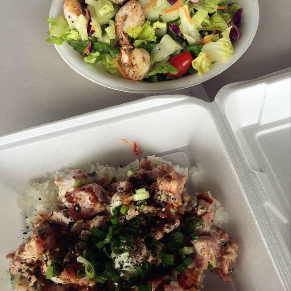 ...买了便当,下面是夏威夷的特色美食poke,生金枪鱼配米饭,但实在是吃不惯,后来就给熊大人干掉了