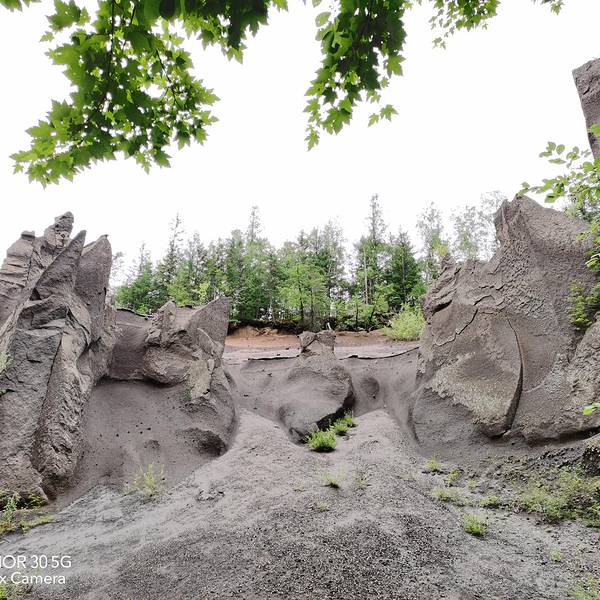 等了半个多小时,大雾没有一点退去的迹象,再加上实在是太冷了,无奈只能放弃了,乘车返回起点。出来以后可以看到去浮石林的大巴车,随后我们乘车去浮石林看火山喷发的遗迹。火山爆发烧毁了大量的树木,这些灰烬又随着雨水被冲积到峡谷的两侧,经数百年的风雨剥蚀,形成了千姿百态的造型。(我们都是可以近距离去观察这些火山遗迹的,所以希望各位驴友能够克制住好奇心,不要有任何的破坏行为,一起保护我们自己的自然文物)