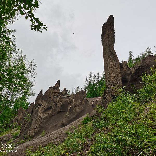 聚龙火山石林景区(原峡谷浮石林)位于长白山北坡山门东南约6公里处,是一处由火山喷发而形成的地质景观区。峡谷内怪石林立,并可见泉水流淌,而游客不仅可一览峡谷奇石全貌,还可经步道下到谷底细细品赏这些天然艺术杰作。 聚龙火山石林景区以前也称为景岗山,这里是一条火山爆发引起的地壳运动所形成的大裂谷,如今这里不仅可见到许多奇峰怪石,也有瀑布、溪流、暗河等景观,景区内还有无字碑、猎人屋等小景点可一并游览。