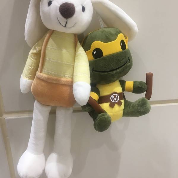老公迷恋上了抓娃娃,所以又一次来到了百利城的抓爪鱼。战利品,小王八是昨天抓到的,正好凑了一对龟兔
