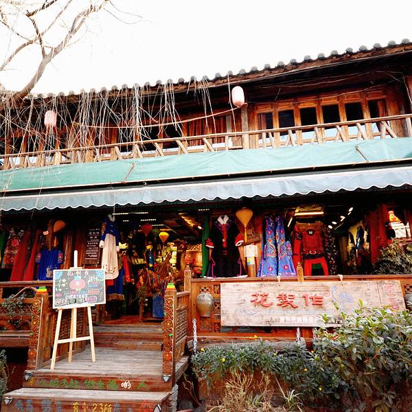 在束河,卖民族风格的棉麻布衣的店铺可不少,很多店主晚上做衣,白天卖衣。其中花制作算是老店了,口碑不错…