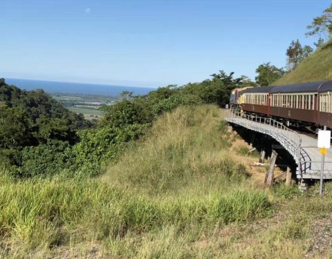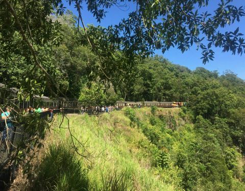 闲逛中,我们还意外地走进了热带雨林火车站,看到了漂亮的观光小火车。据说,这个空中缆车全长7原定在小镇上乘坐雨林天轨空中缆车的。据说,这个空中缆车全长7.5公里,所有的高塔均以不破坏雨林生态的特殊工法建构在古老的热带雨林上空,是世界上最长的缆车之一,会带给游客独一无二的体验。我们运气不佳,恰...原定在小镇上乘坐雨林天轨空中缆车的。据说,这个空中缆车全长7.5公里,所有的高塔均以不破坏雨林生态的特殊工法建构在古老的热带雨林上空,是世界上最长的缆车之一,会带给游客独一无二的体验。我们运气不佳,恰逢缆车进入维修期,就从今天起!旅行社退给每人35澳元,谁愿要这笔退款啊?魏导见大家很失落,安慰我们说,缆车在中途停靠一个观景台,观看著名的巴伦瀑布。他现在就开车送我们去那儿,聊作补偿。4点,到达目的地。巴伦瀑布是热带雨林的一部分,由于未逢雨季,瀑布比较细小,倒是瀑布所在位置——一个天坑似的大峡谷,很有些看头。 展开