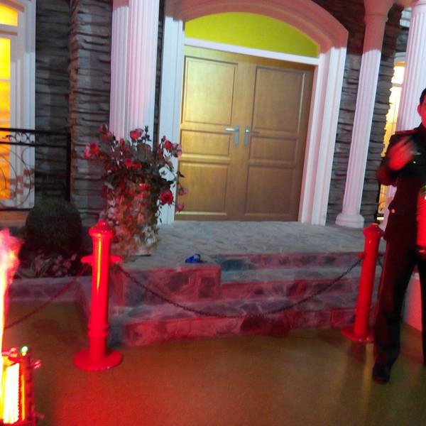 在家门口,看着门口不错,严肃庄重