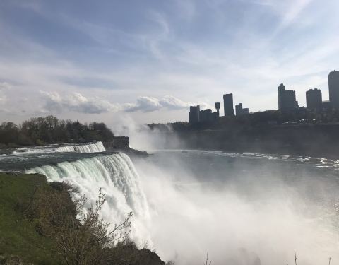 尼亚加拉大瀑布很壮观,本以为加拿大现在应该是冰天雪地的时候,不曾想现实却是绿草如茵,感觉很震撼,之前只看过很小很小的瀑布,完全没有可比性的,蚂蚁和大象的感觉