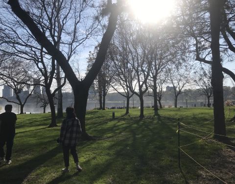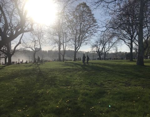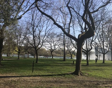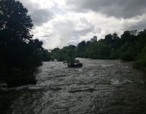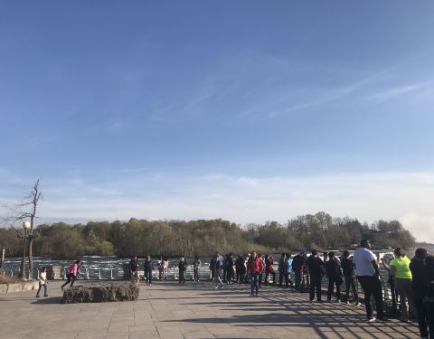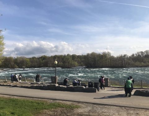 美国这边的尼亚加拉大瀑布上面是一个公园,有草坪,木栈道。听着瀑布的水声,空气清新。沿着瀑布和河流散步,到处都是小松鼠。还有很多鸟在。是美国最喜欢的地方。