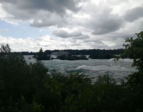 三姐妹岛。 三姐妹岛又称摩斯岛(Moss Island)。摩斯是音译,意译即苔藓。苔癣岛,意思是岛上的岩石被苔癣覆盖,光滑的岩石和大量坑洼意味着早先此岛曾淹没于急湍。 近年来,由于建造水力发电厂使上游河流分叉,该岛有点增扩。 当然,如今在小小的岛上,除了草和树,看不见什么明显的苔癣了。 人类,改变了足迹所到处的一切。 倘若说,站在马蹄瀑布上有踏于瀑布之上的感觉,那么在苔癣岛上,就有被四周的水囚困之觉。 不能说踏,说逛吧。 驻留一阵,与素不相识的美国老人聊了会,得知他的夫人是加拿大人,从前住在河对岸的尼亚加拉瀑布小镇上...... 岛上,感觉美国和加拿大是紧密相连或者一体的。 (❁´◡`❁)*✲゚* 我来到尼雅佳拉 我走进雾雨和迷幻 我一见钟情 我于前世溺死 我将三生三世沉溺于爱情 我离开后悄悄哭了一会 我在水牛城想起水牛想起你又流了泪