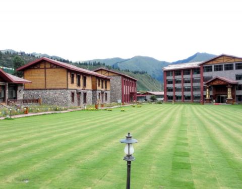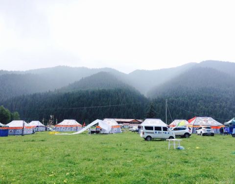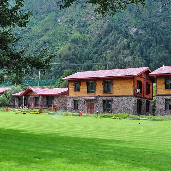 不进入景区,是想把更多的时间留给旗布林卡度假公园,因为这里晚上会有篝火晚会,明天是恰巧遇到的第二届卓尼国际自驾狂欢节。 从大峪沟景区到旗布林卡度假公园也就半个小时的车程,度假公园因为明天的狂欢节,草地上到处扎着帐篷,很是壮观,而我们入住的度假村是公园内唯一的四星级游客接待酒店,这里有独栋别墅,也有标间,但是价格不菲,而且平时游客稀少,进入房间,湿气很重。 下图是酒店概貌。