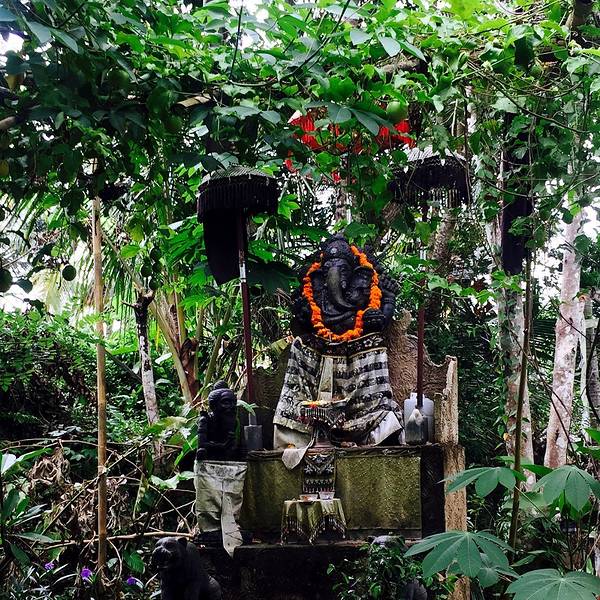 一路呼呼大睡,也不知道过了多久,醒来的时候已经到咖啡农场了。这就是咖啡豆原来的样子。司机示意我们摘一颗尝尝,说是甜的。果不其然,带着一点清甜。不知名的花,本来想问司机的,刚睡醒懵懵的骏爷后来给忘了。有谁知道不?圆子不大,说是咖啡园,其实也就是马么一片咖啡树。不过还是有那么点郁郁葱葱的感觉。会有一个阿婆象征性的炒炒咖啡豆。骏爷爱喝咖啡,但不是很懂。不过看着都觉得这咖啡豆味道一般。另外好养着几只猫,用来做猫屎咖啡。入座之后,服务员会端上8种饮料。从左至右分别是人参咖啡、姜茶、巴厘咖啡、柠檬草茶、热可可、洛神花茶、椰汁咖啡和山竹汁。其他饮料到底材料时分讲究、健不健康骏爷也不好评价。至于巴厘咖啡,味道非常清淡,可能是采用了活塞式冲泡,咖啡渣比较粗糙。这几杯品尝的茶饮是免费的,如果喜欢可以到农场内的商店购买。当然了,巴厘岛最有名的猫屎咖啡是要另外收费的。好吧,实在过不了心里那一关。骏爷觉得巴厘岛上类似这样的农场应该有很多个,不同的司机可能带你去的地方都不一样。骏爷去的这个地方,景色倒是不错,能望到郁郁葱葱的热带丛林。说是咖啡农场,骏爷总觉得咖啡树也好猫也好,都是幌子主要还是要你买东西。但说实话看过去都不咋地。骏爷最后买了一盒柠檬草茶当做小礼物回家孝敬凉凉。